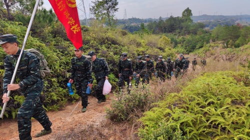 队伍按照预定路线从学校大门出发,踏上了前往附近山野的征程。山路蜿蜒,考验着每一位学员的体力与毅力;田野广阔,见证了他们的团结与坚持。这一路,不仅是对身体的锤炼,更是对精神的洗礼。 行军途中,学员们切身感受革命先烈不畏艰险、英勇顽强的拼搏精神,每一步都在激发着心中的爱国热情。