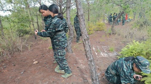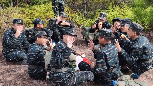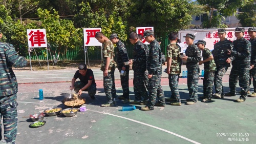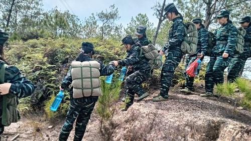 顺利返回学校外操场集结后,教官对行军环节进行了小结讲评。随后,活动进入最具挑战性的环节——野外生存训练。在老师们的协助下,男女学员分别奔赴指定区域,方才宁静的场地瞬间充满了生机与活力。