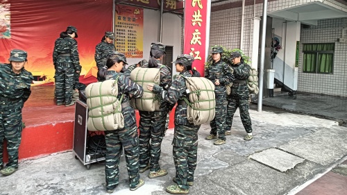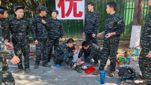 顺利返回学校外操场集结后,教官对行军环节进行了小结讲评。随后,活动进入最具挑战性的环节——野外生存训练。在老师们的协助下,男女学员分别奔赴指定区域,方才宁静的场地瞬间充满了生机与活力。
