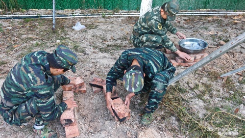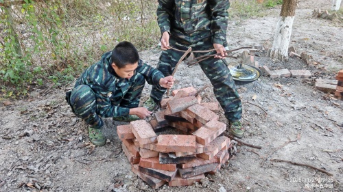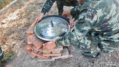 真正的考验开始了。 学员们以班排为单位,迅速行动起来。搭灶是第一步,垒砌出一个灶台来,考验着每个同学的动手能力和智慧。生火成了关键战役,吹气扇风、小心添柴,当灶膛里终于跃起第一簇火苗,人群中爆发出小小的欢呼。
